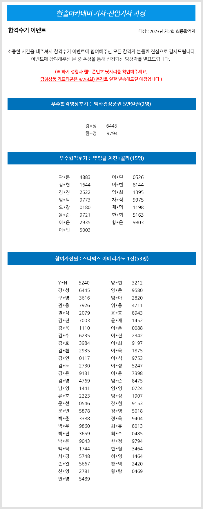 2023년 제2회 건축/전기/토목/건축설비/공조냉동기계(산업)기사 합격수기 이벤트 당첨자 발표