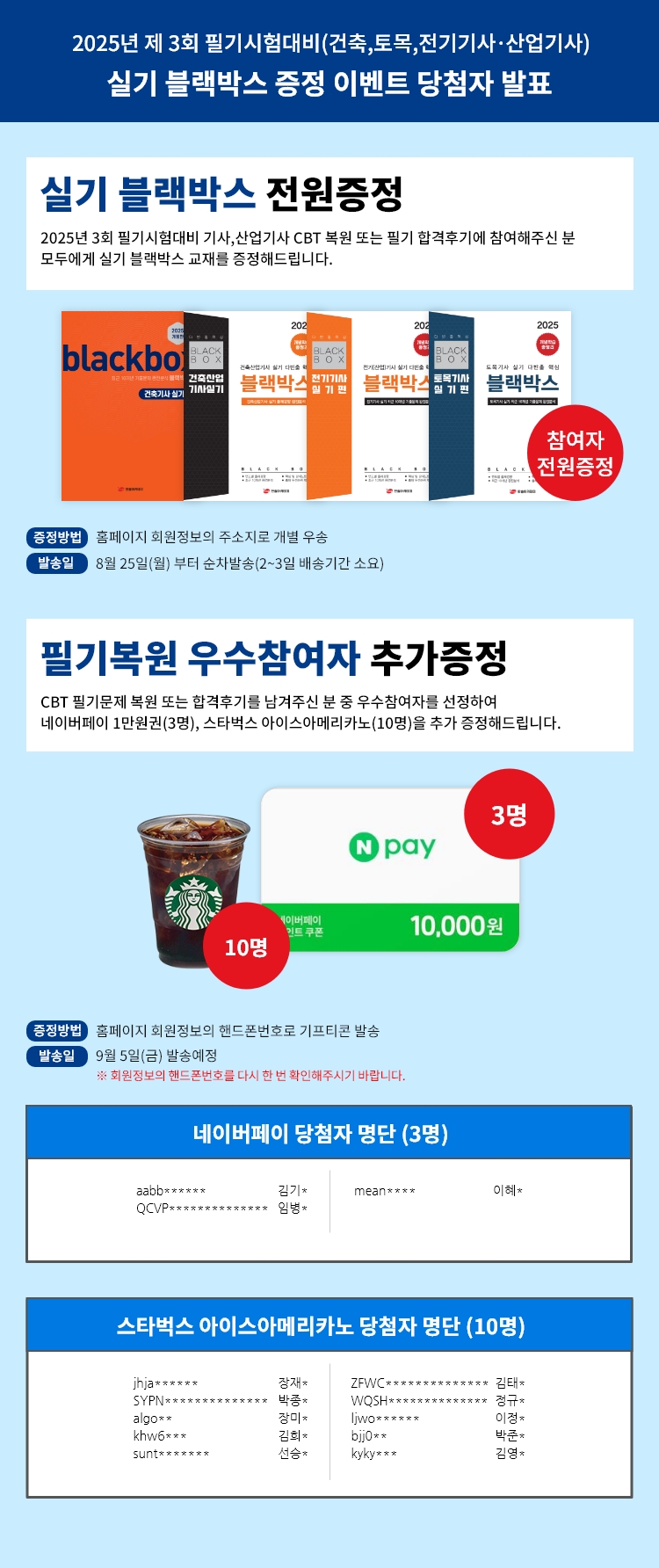 2025년 제3회 필기 CBT 복원 이벤트 당첨자 발표(건축,토목,전기기사ㆍ산업기사)